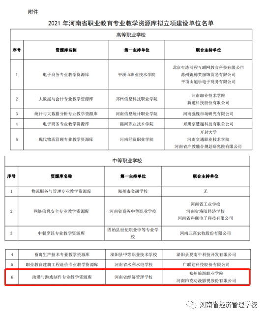近日,河南省教育厅公布了2021年中等职业教育专业教学资源库项目,由我校主持的“动漫与游戏制作专业教学资源库”获批河南省中等职业教育专业教学资源库2021年度立项建设项目。 据了解,本次省级专业教学资源库立项经...