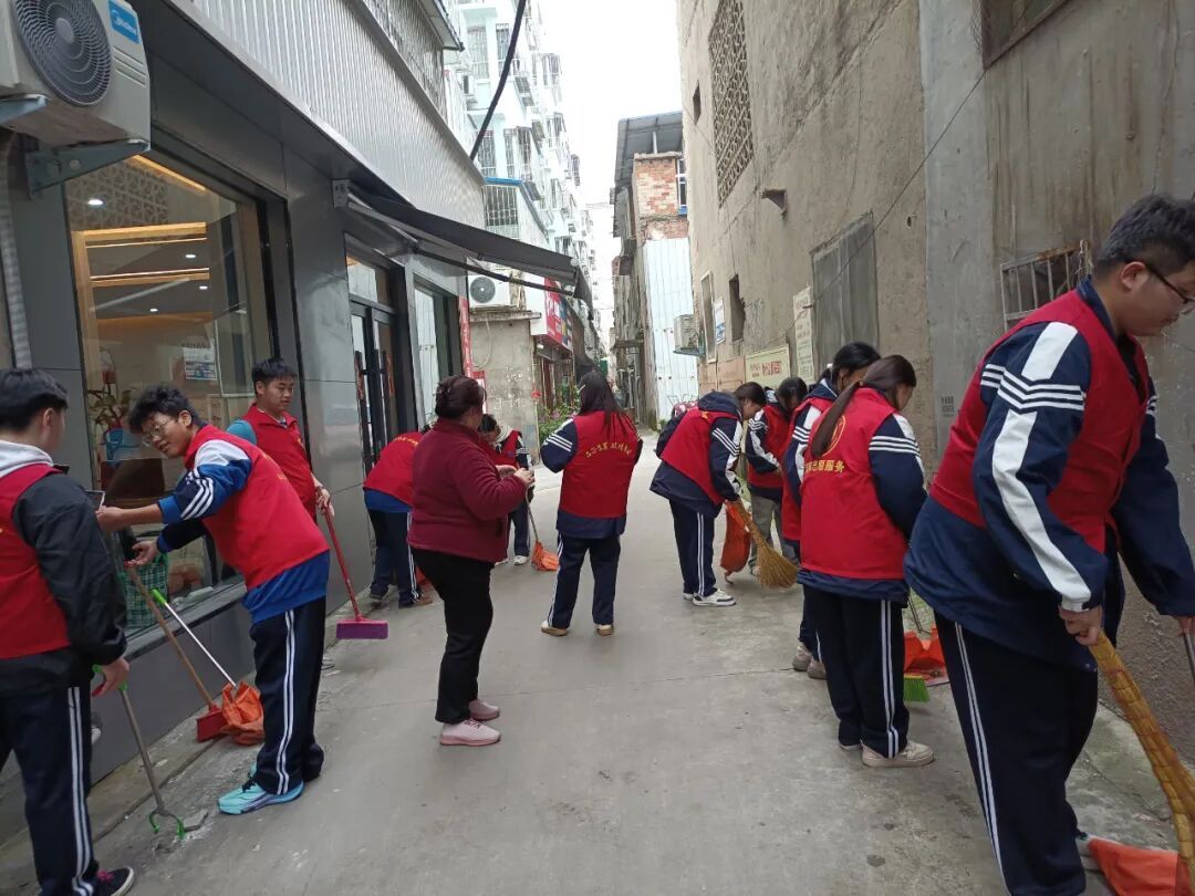 10 月 25 日,综合高中部 10 余名入团积极分子及团员在支部书记张勤芳与辅导员刘猛的带领下,赴七里园新街社区开展环境卫生打扫志愿服务,将团学教育融入实践场景。
