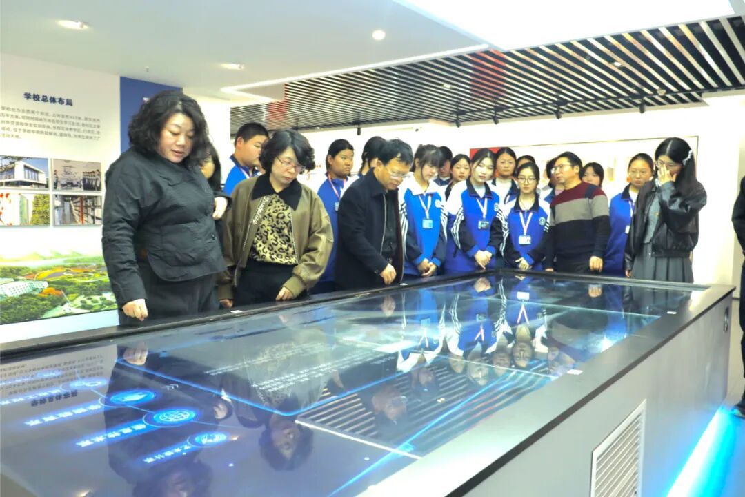 师生们随讲解员从序厅穹顶“星空”下习近平总书记关于职业教育的重要论述切入,循着四大展区脉络深入探寻校史。第一展区“风雨笃实 为国育才”板块,师生借史料与场景还原,深悟“肩扛手抬改教室、白河滩开荒种菜”的“大仓精神”;第二展区展现从单一粮食专业到8个专业群23个专业的发展,及500余名专兼职教师中的省级名师、骨干风采,彰显办学实力跃升;第三展区优秀校友互动屏上,张建国等榜样事迹,诠释“今天我以母校为荣”;第四展区呈现学校推进“双高计划”、筹建河南商业职业学院的未来规划,令人期待。