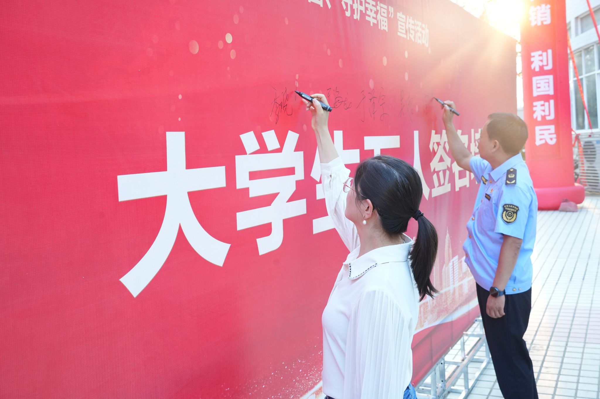 在启动仪式结束后,参加活动的有关领导、相关负责人带领执法人员、数千名学生观看宣传展板,并在主题签名墙上签字。现场还通过发放宣传资料、开展咨询解答、典型案件等方式,全方位、深层次向学生宣传传销的组织形式、活动规律、惯用手段等展示,本次活动为筑牢校园安全防护网,自觉提升防范传销的能力打下坚实基础。