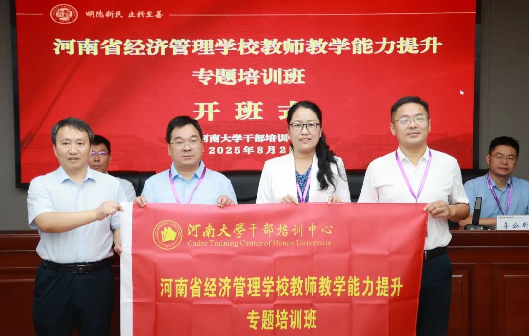 为精准锚定新时代教师队伍建设航向,深度激活师德师风建设动能,全方位提升教育教学水平与人才培养质量,8月2日,我校教师教学能力提升专题培训班在河南大学正式开班。校长杨俊峰,河南大学干部培训中心副主任、继续教育学院副院长蒋军营,副校长吴超,校纪委书记李公昕出席开班仪式,部分教学管理人员及骨干教师共50余人参加。开班式由吴超主持。