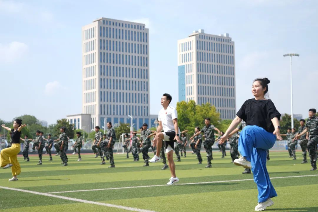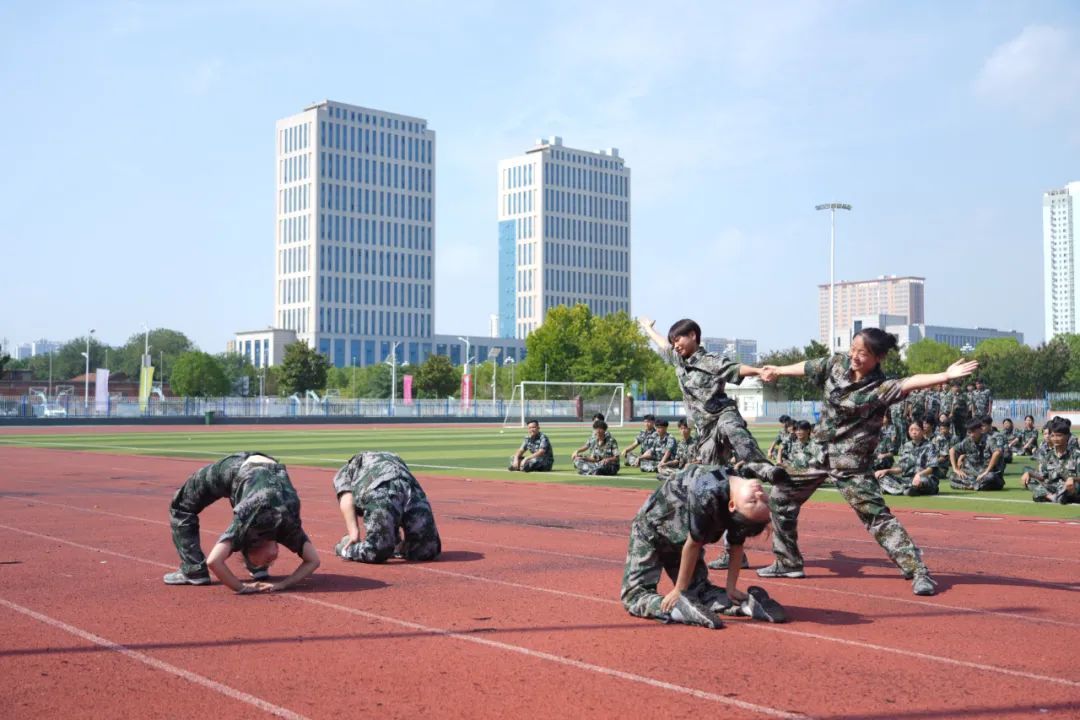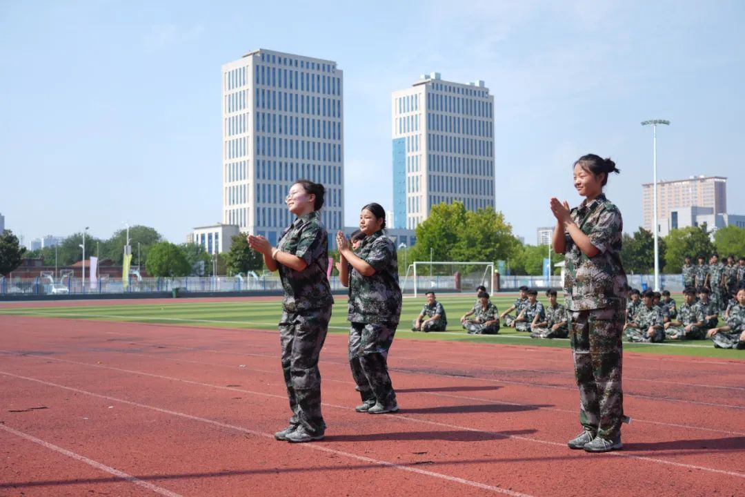 集训教师与学生骨干方队依次登场,相继展开队列动作、广播操、文明礼仪操及内务整理的汇报展示——从铿锵有力的步伐变换,到整齐划一的操节展示,再到棱角分明的内务示范,军事化训练成果逐一呈现。随后,社会主义核心价值观、德育誓词宣读与才艺展演环节接连展开,刚柔并济间尽显集训的多元收获。同学们以挺拔如松的姿态、精准规范的动作、震彻操场的口号与朝气蓬勃的精神面貌,将经管校学子“青春向党、奋斗强国”的昂扬风采诠释得淋漓尽致。