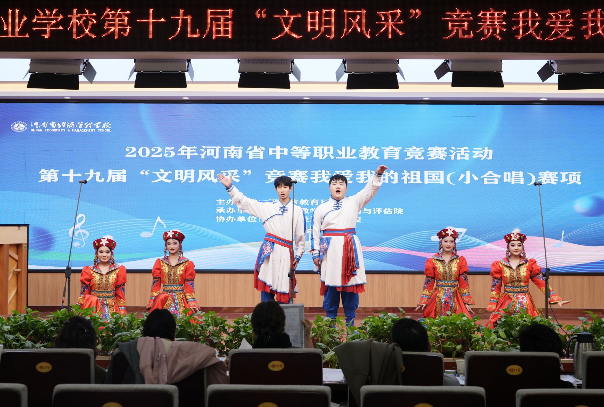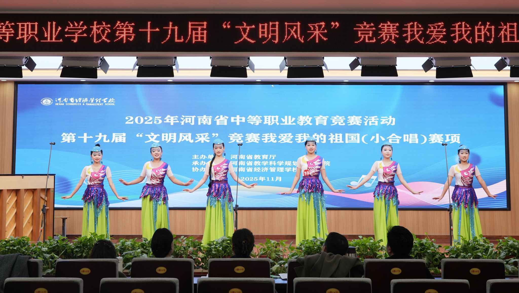 11月14日至15日,2025年河南省第十九届中等职业学校“文明风采”竞赛“我爱我的祖国”小合唱比赛在我校成功举行。学校党委副书记、校长杨俊峰出席大赛开幕式并致欢迎辞,南阳市教育局职成教科科长王盛超,大赛裁判长、中原工学院王秋兰教授受邀出席。开幕式由副校长吴超(女)主持。