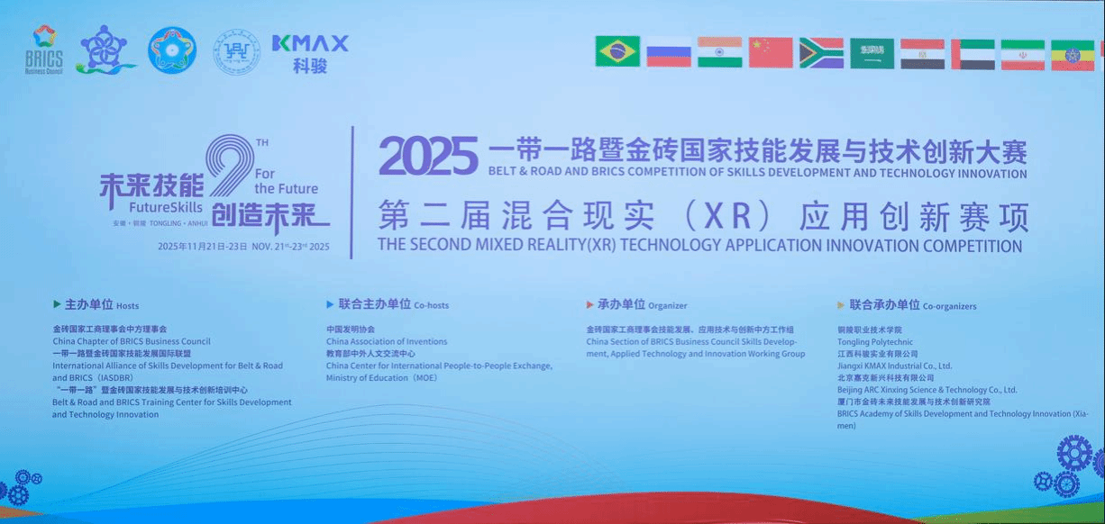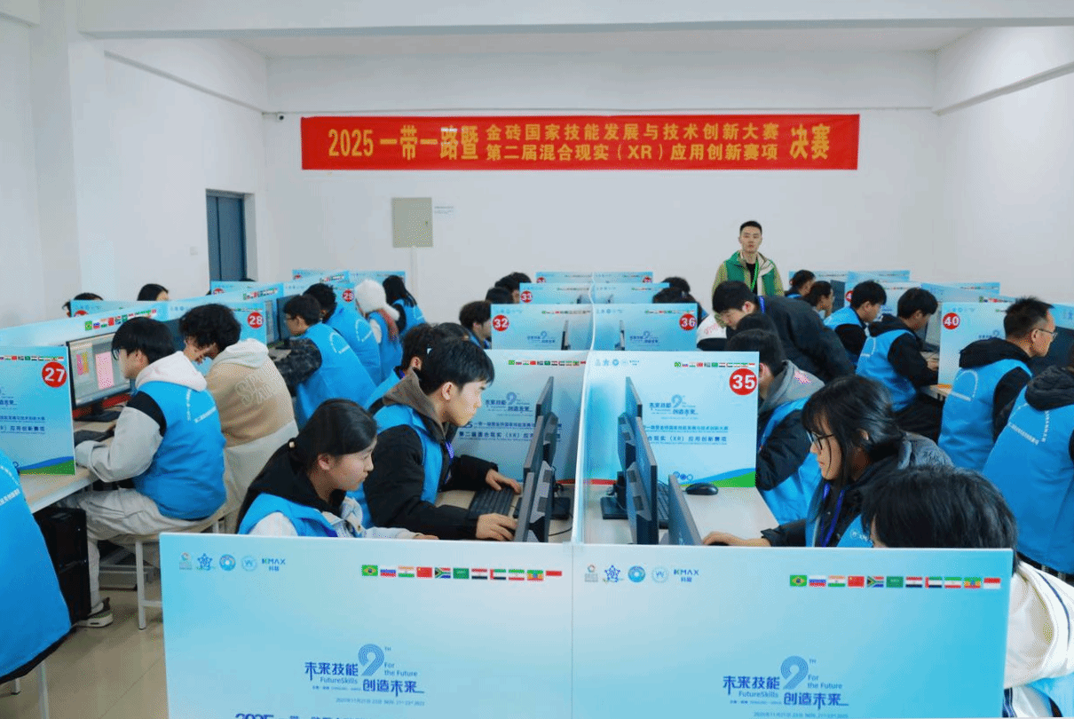 11月21日至23日,由金砖国家工商理事会中方理事会、一带一路暨金砖国家技能发展国际联盟等单位主办的2025一带一路暨金砖国家技能发展与技术创新大赛第二届混合现实(XR)应用创新赛项全国总决赛在铜陵职业技术学院圆满落幕。作为聚焦前沿技术的国家级重要竞赛,本次大赛吸引了全国59所职业院校的105支队伍、210名选手同台竞技,涵盖中职、高职及职工组多个组别,赛事规格高、竞争异常激烈。我校汽车工程系宋鹏程、王金刚两位老师组成的团队凭借扎实的专业功底、创新的设计理念和高效的团队协作,从众多参赛队伍中脱颖而出,成功斩获该赛项职工组一等奖的优异成绩,充分彰显了我校教师队伍过硬的专业素养与技术应用能力。
