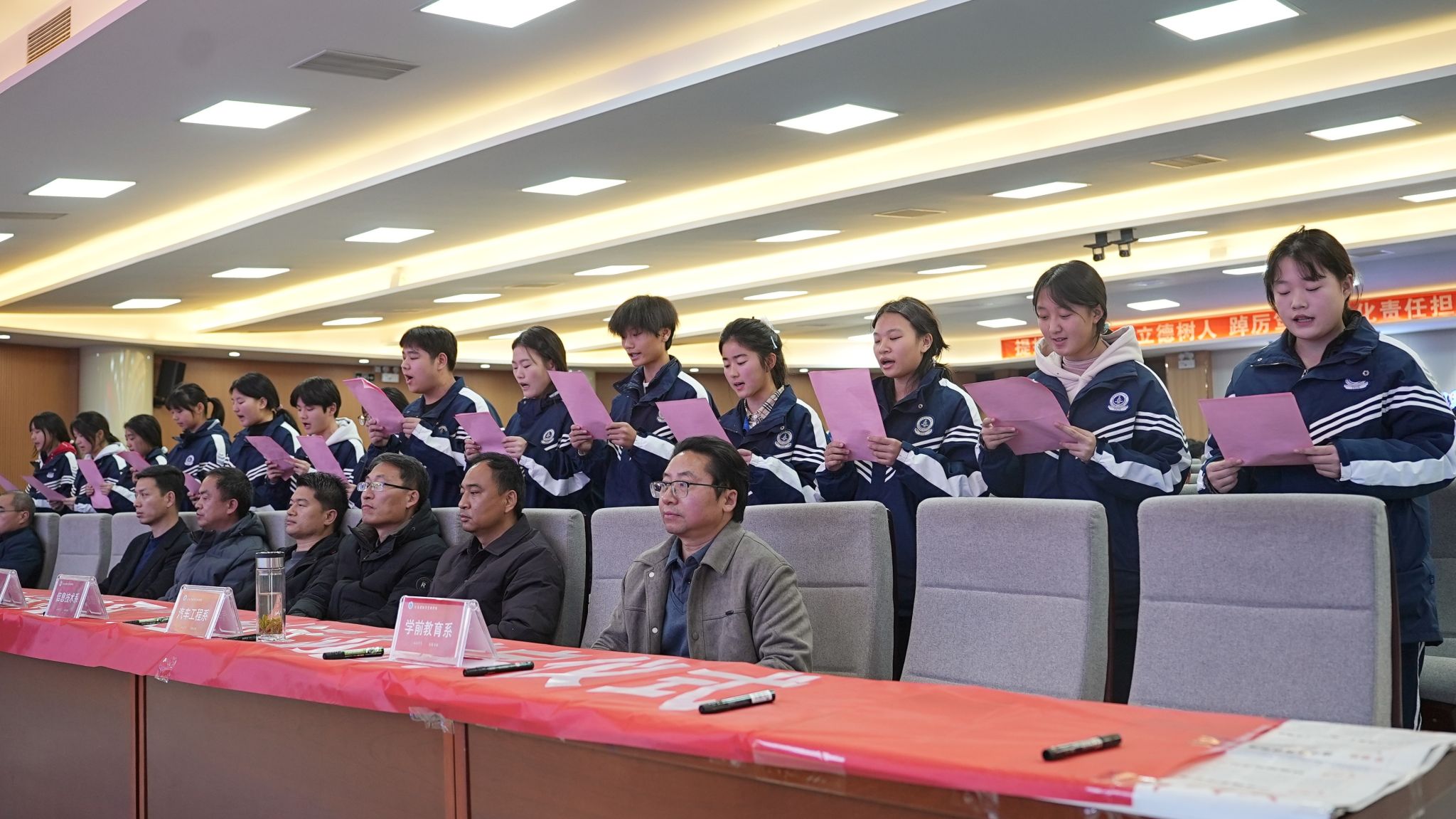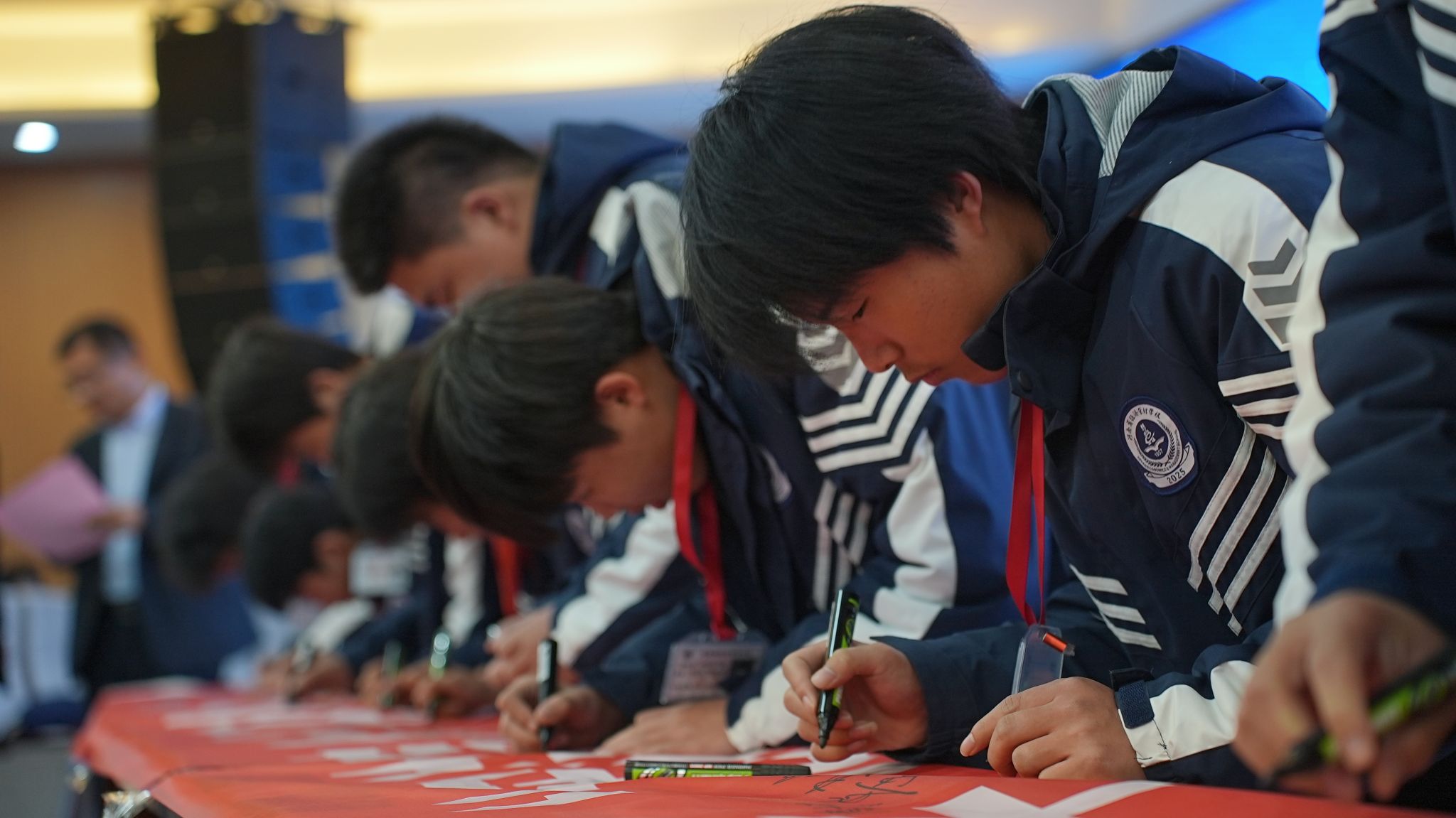 学生代表齐声诵读《宪法晨读内容》,深刻领会宪法的权威与温度。随后,全体参会师生依次在主题条幅上郑重签名,以实际行动表达尊崇宪法、维护宪法的坚定决心。
