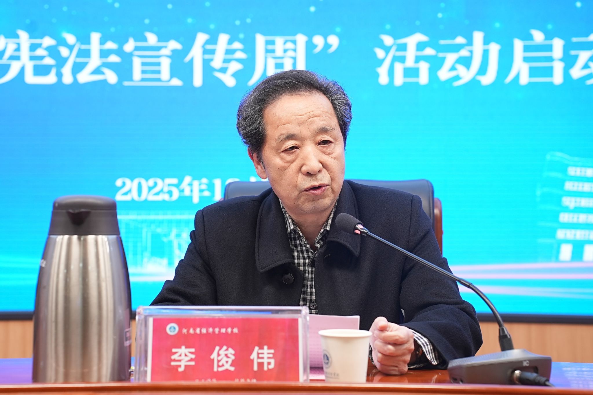 为深入学习贯彻习近平法治思想,切实加强全体师生法治意识,推动法治校园建设走深走实,12月4日,我校在求诚楼一楼学术报告厅举行2025年“宪法宣传周”活动启动仪式。校关工委常务副主任李俊伟出席仪式并讲话,校党委委员、副校长吴超(女),校关工委办公室主任、人事处处长洪彬彬,校团委书记、学生处处长李晗及各系师生代表共计300余人参加仪式。仪式由吴超(女)主持。