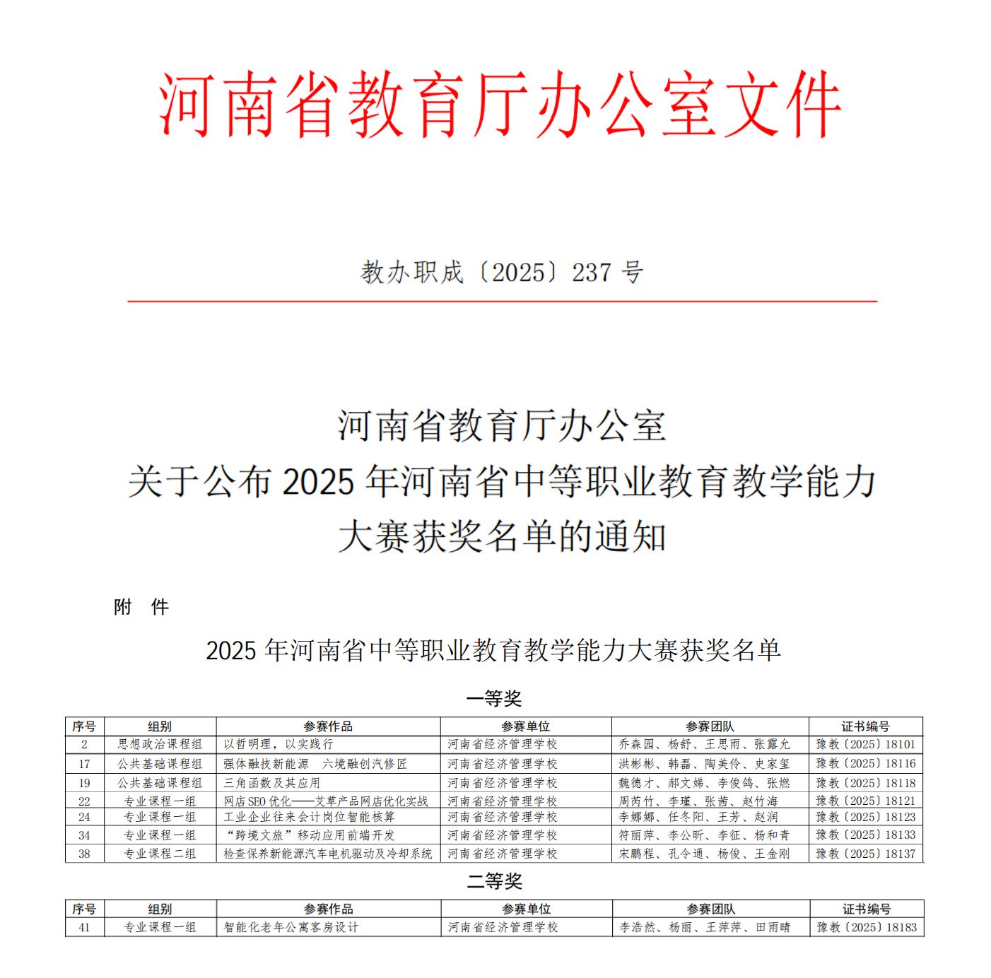 喜报!我校在2025年河南省中等职业教育教学能力大赛中取得优异成绩